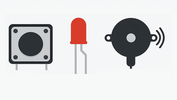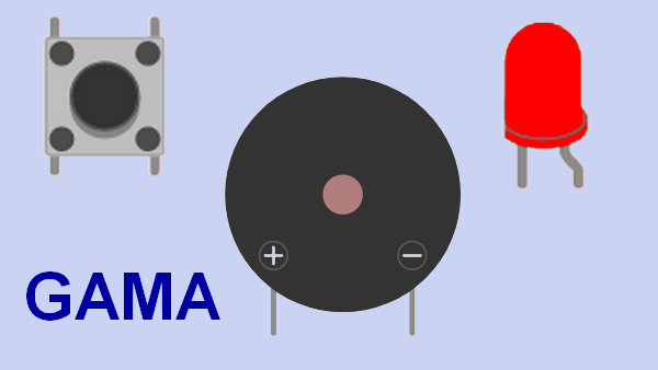 dioda, buzzer pasywny, switch